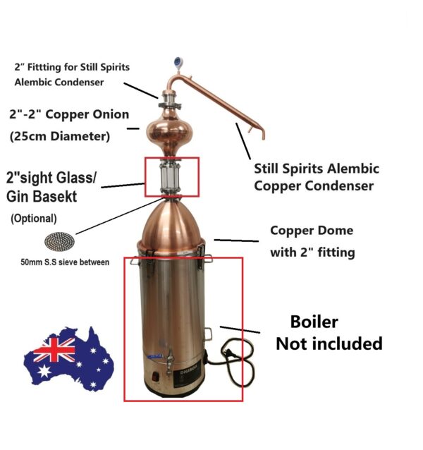 - This is another version of 35L Copper pot still with copper dome and whisky Onion and still spirtist alembic Pot still condenser kit but without Boiler .