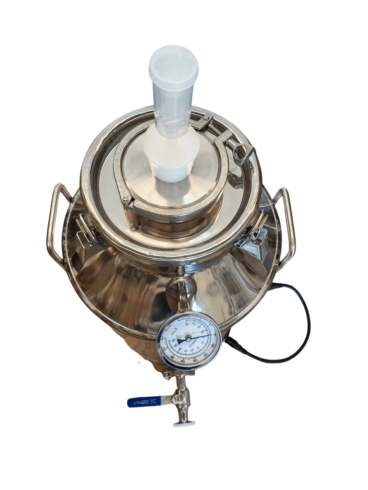 It comes with a stainless steel lid with 4″ ferrule on top so that you can use it for a 4″ distillation column.