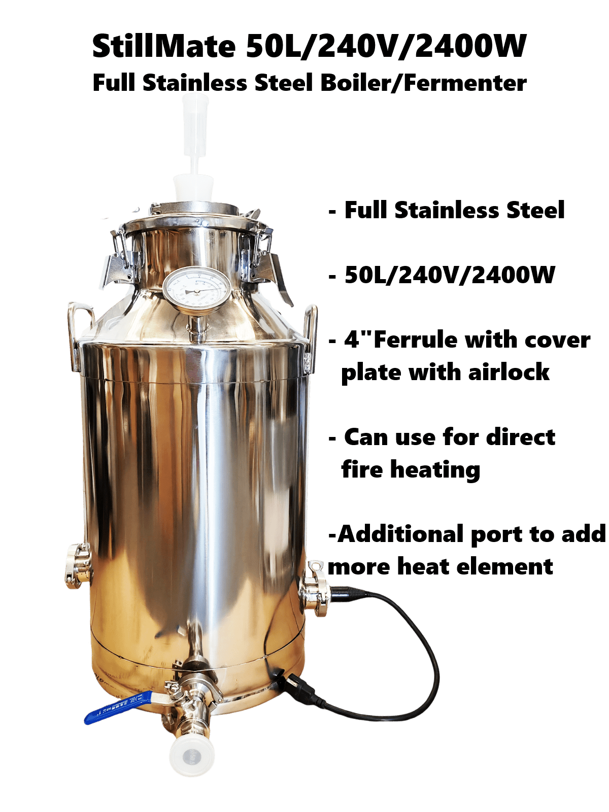 It also comes with 48mm Hole Cover plates for the 4″ Ferrule so that you can use this boiler for still spirits T500 condenser or Alcoengine condenser.